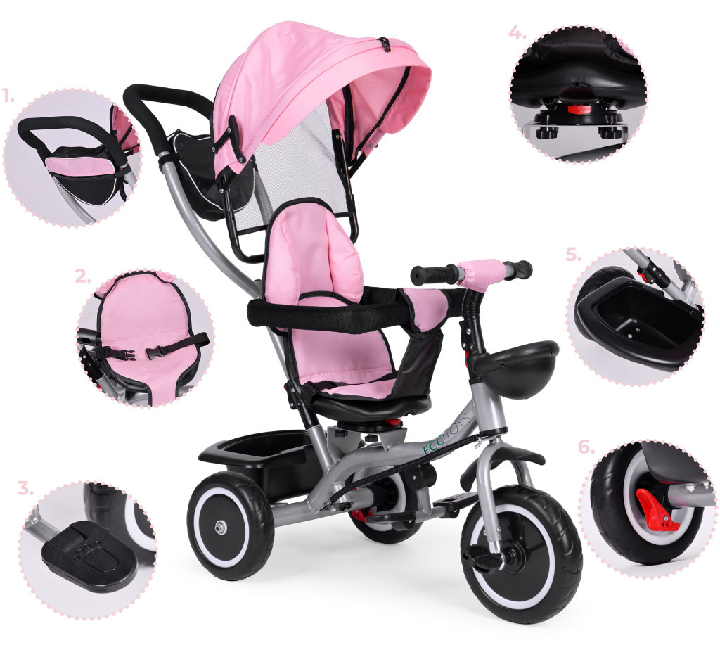 Descoperiți tricicleta ECOTOYS - partenerul perfect pentru plimbările copiilor și distracția de zi cu zi. Un mix de funcționalitate și siguranță îi garantează micuțului dvs. confort și multă distracție. Tricicleta este proiectată pentru a se adapta nevoilor copilului în creștere, sprijinindu-l în diferite etape de dezvoltare. Nu este doar o plimbare confortabilă, ci și o modalitate prin care copilul dumneavoastră să se bucure de momente sigure și fericite în fiecare zi.