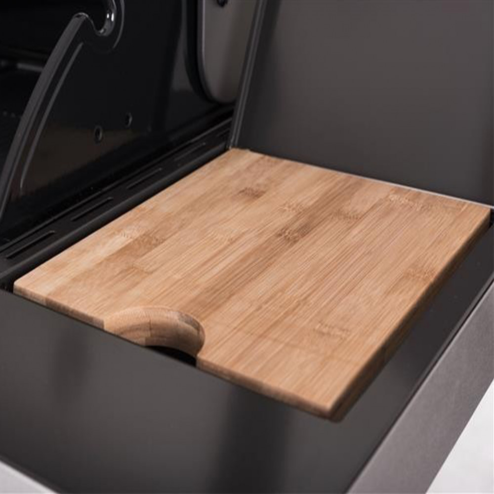 În partea dreaptă, există o plită ceramică separată pentru prepararea sau menținerea la cald a sosurilor sau a altor preparate. Există un compartiment de depozitare pe partea stângă. Există o suprafață suplimentară în compartimentul cuptorului pentru menținerea alimentelor calde. Un element mic, dar esențial, este desfăcătorul de sticle încorporat. Puteți depozita butelia de gaz într-un dulap inferior cu două uși, care se poate încuia. Grătarul are 4 roți pentru transport.