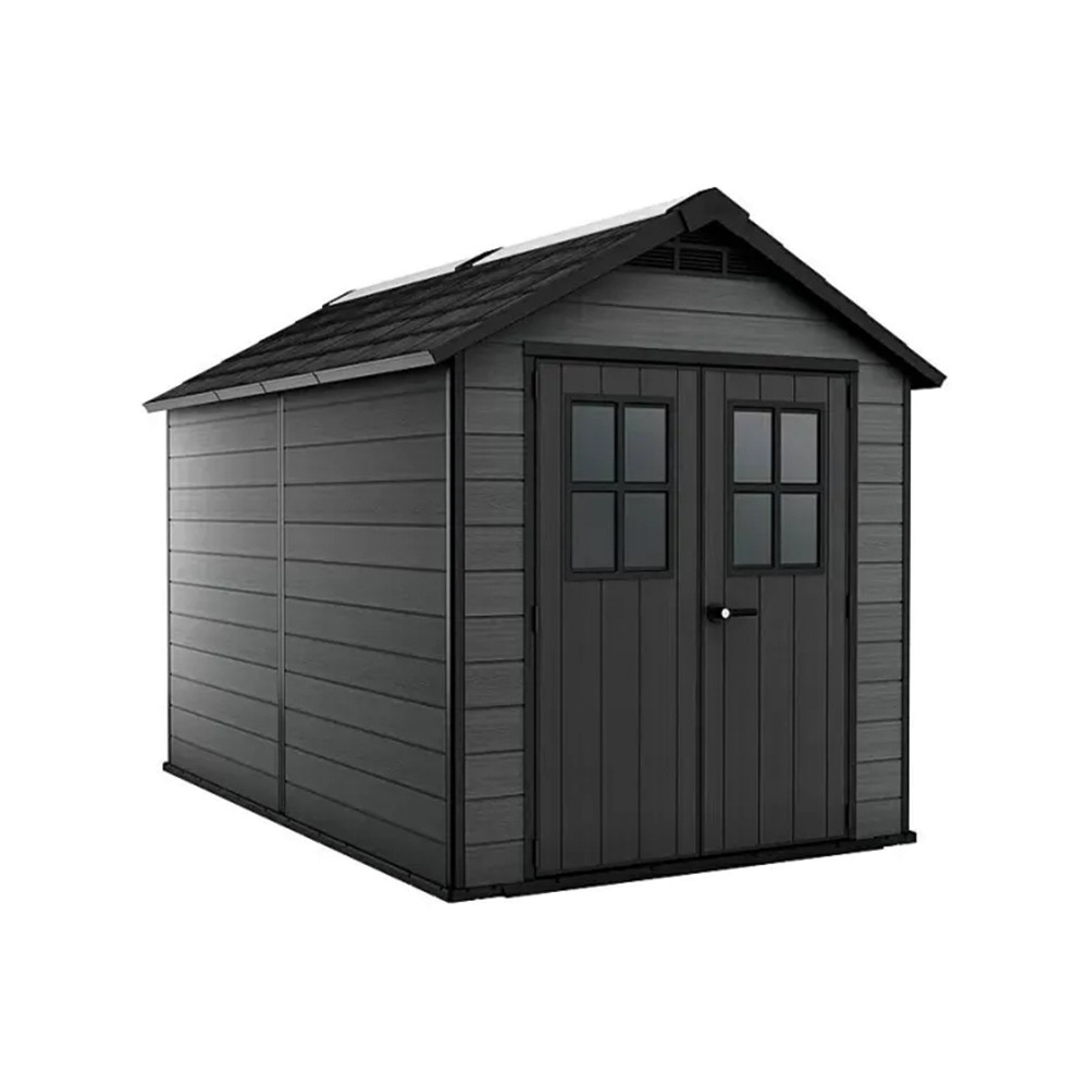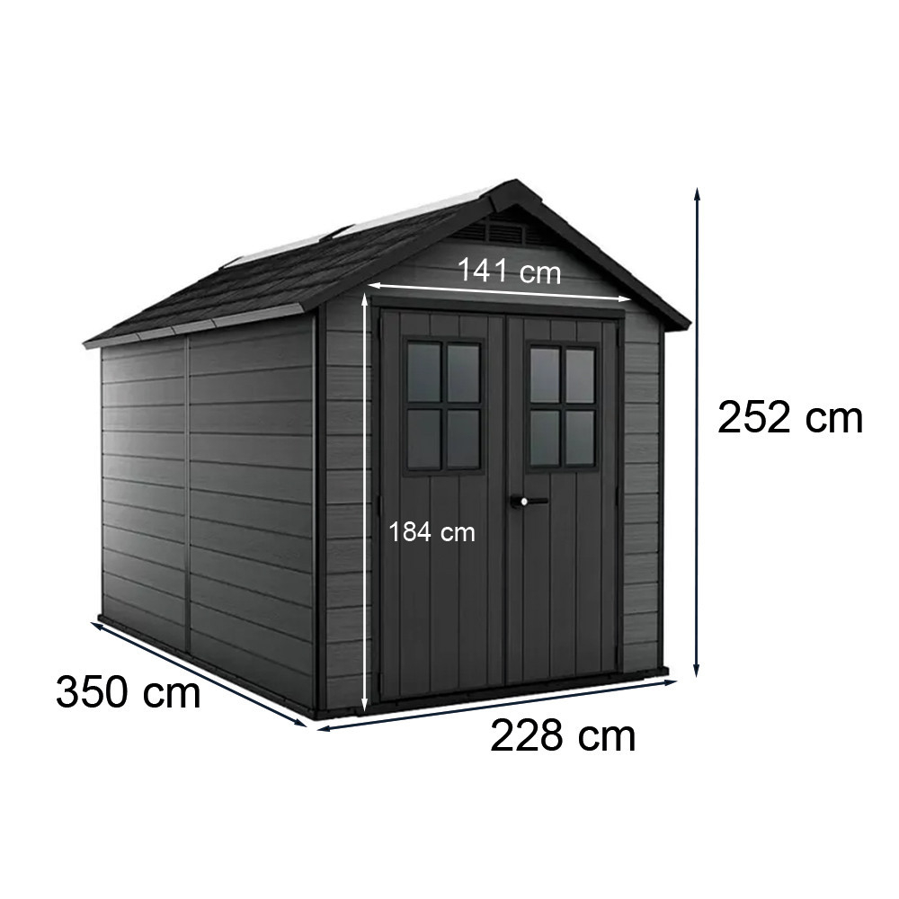 Șopronul pentru scule din plastic Keter Newton 7511 (8m2) are o înălțime de 252 de centimetri, o lățime de 228 de centimetri și o adâncime de 350 de centimetri (inclusiv acoperișul). Interiorul casei are o suprafață utilă de 6,5 m2! Marca Keter este cunoscută în întreaga lume ca producător de mobilier și accesorii de grădină din plastic de cea mai înaltă calitate. Marca este pe piață de peste 60 de ani. Fabricile companiei sunt situate în Europa.