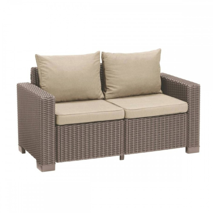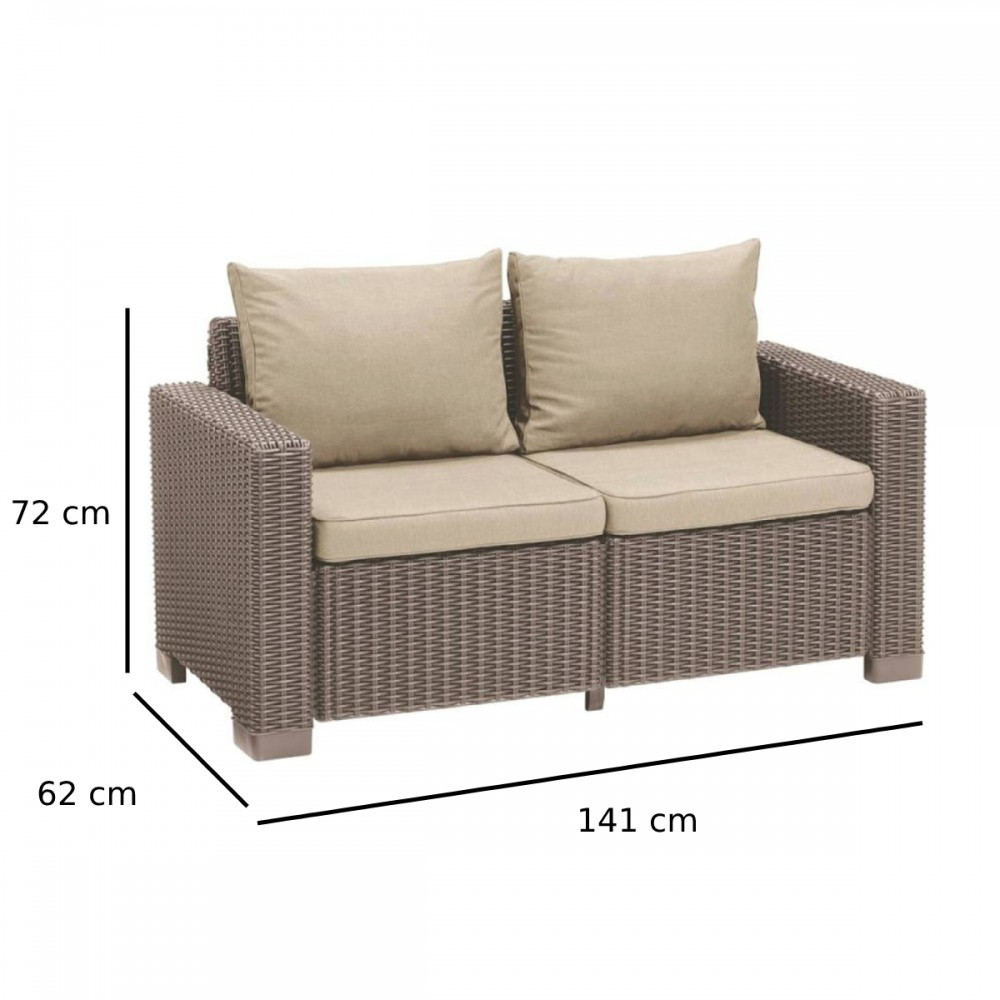 Canapeaua California cappuccino cu 2 locuri este o piesă de mobilier care satisface așteptările chiar și ale celor mai exigenți clienți. A fost creat folosind materiale de înaltă calitate, iar designul său urmează tendințele globale în materie de decorare și amenajare a spațiului. Canapeaua este potrivită atât pentru utilizare în exterior, cât și în interior, deoarece este rezistentă la intemperii. Va fi un element important al mobilierului de grădină sau terasă, oferind locuri pentru trei persoane și asigurându-le cel mai înalt nivel de confort. Această piesă de mobilier este practică, solidă, durabilă și excepțional de estetică, putând fi utilizată atât în spații private, cât și în spații comerciale (de exemplu, restaurante, hoteluri, cafenele).