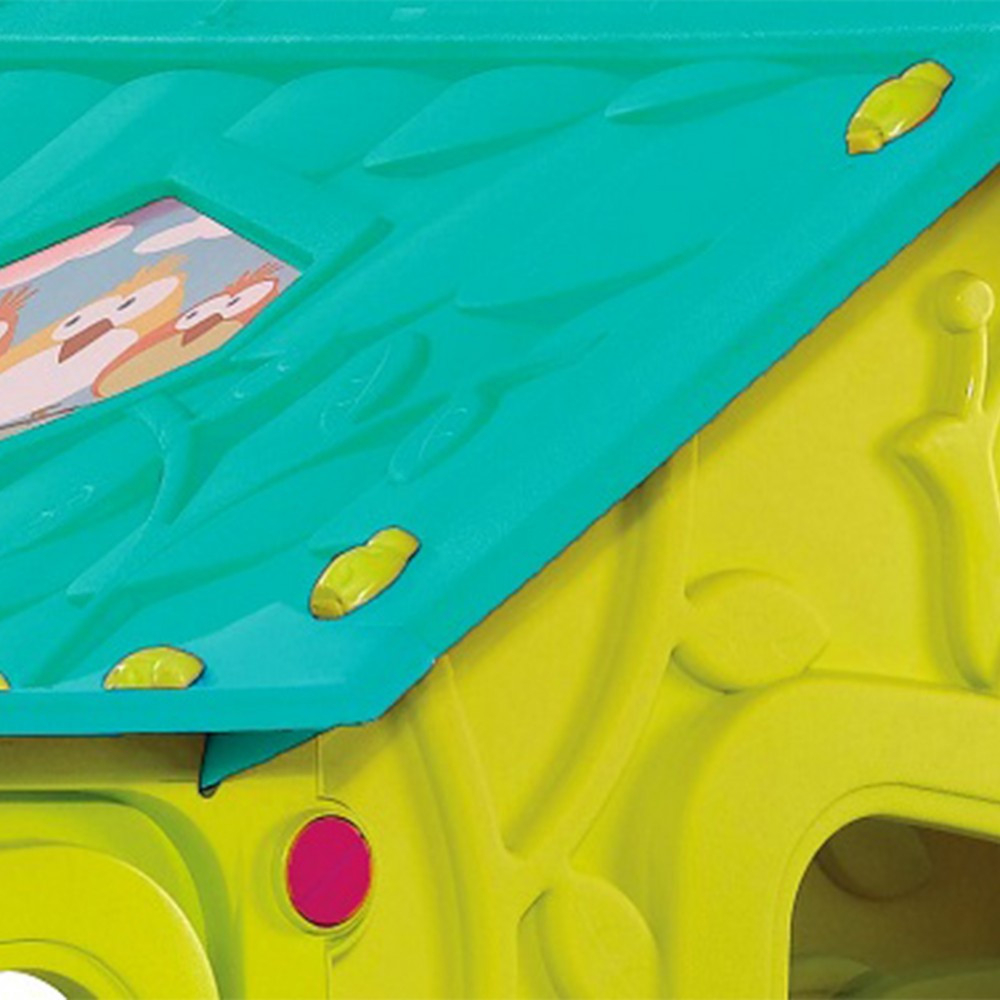 Impresionanta și colorata casă pentru copii este o jucărie practică atât pentru exterior, cât și pentru interior. Carcasa este fabricată din plastic turnat prin injecție de înaltă calitate. Pereții casei prezintă plante și modele în relief. Pe lateralele sale există uși de intrare și ferestre. Puteți accesa casa de oriunde. Acoperișul este decorat cu diferite culori și modele unice.