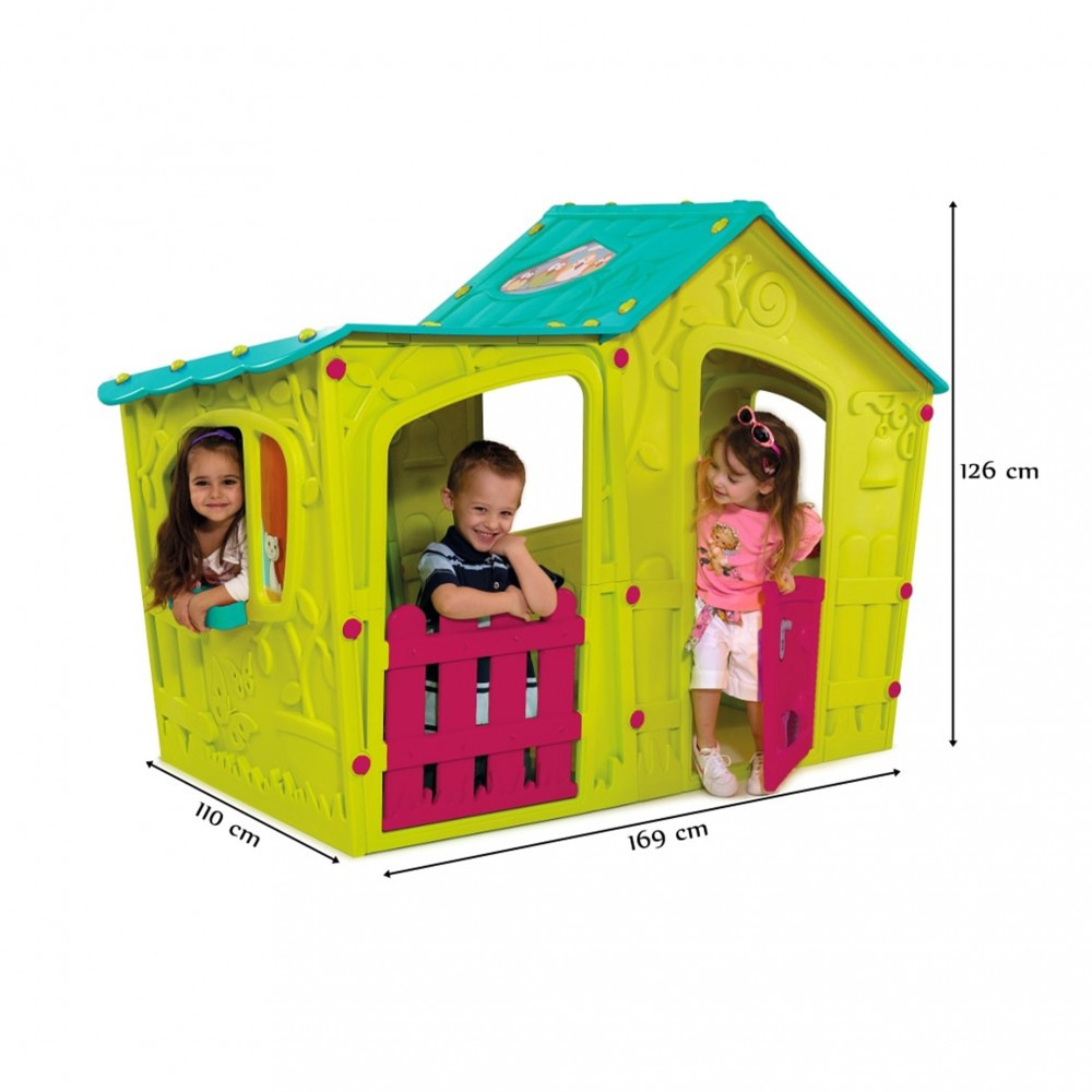 Spațioasa casă de joacă MAGIC VILLA HOUSE este un loc magic! Aici fiecare joc capătă o nouă dimensiune, iar învățarea este, de asemenea, o bucurie! Este fabricat din materiale de înaltă calitate, având în vedere nevoile copiilor. Interiorul spațios este suficient pentru multe jocuri imaginative, în timp ce ferestrele mari oferă părinților monitorizare continuă. Cu stickere decorative, copiii își pot personaliza căsuța.