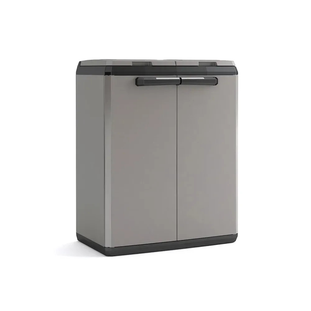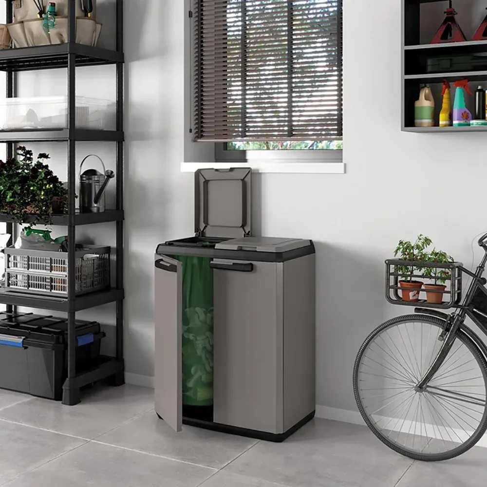 Coșul de gunoi din plastic KeterSplit Basic are un aspect modern, gri închis și negru, care este curat și discret, ceea ce îl face ușor de amplasat în orice bucătărie, cămară sau cameră de serviciu. Forma uniformă, compactă este ușor de păstrat curată, iar designul oferă o soluție practică pentru colectarea selectivă pe termen lung.