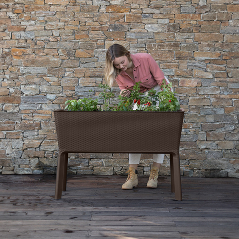 Ghiveciul din ratan artificial Full Bloom este alegerea perfectă pentru cei care caută o soluție convenabilă, dar elegantă, pentru cultivarea plantelor în aer liber. Indiferent dacă doriți să creați o mică grădină de legume sau pur și simplu să plantați flori colorate, această jardinieră va satisface toate nevoile dvs., adăugând în același timp eleganță spațiului dvs. exterior.