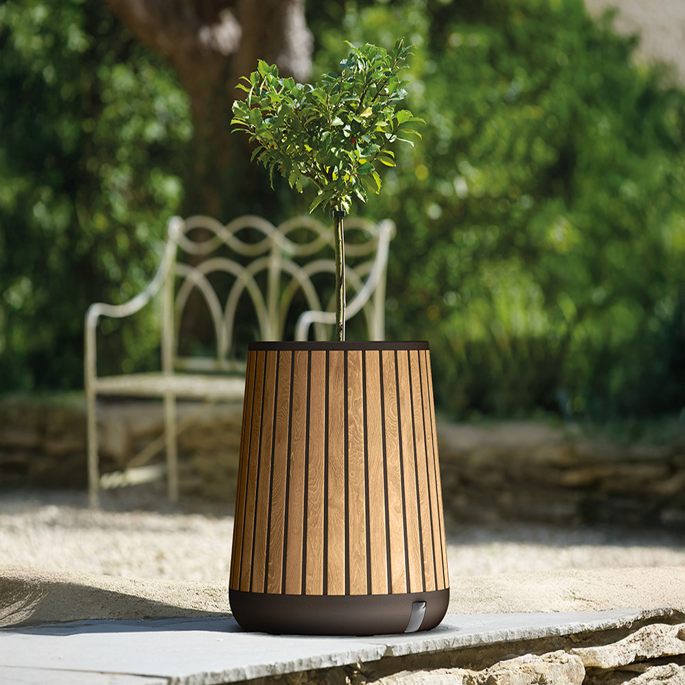 Keter DecoCoat™ este un plastic rezistent la UV de nouă generație, care imită o suprafață naturală din lemn, fiind în același timp complet rezistent la intemperii. Sistemul integrat de drenaj și irigare cu rezervor de apă menține umiditatea ideală a solului – asigurând o creștere mai sănătoasă în zona rădăcinilor. Forma în relief asigură o scurgere și mai eficientă a apei, conferindu-i în același timp un aspect mai estetic.