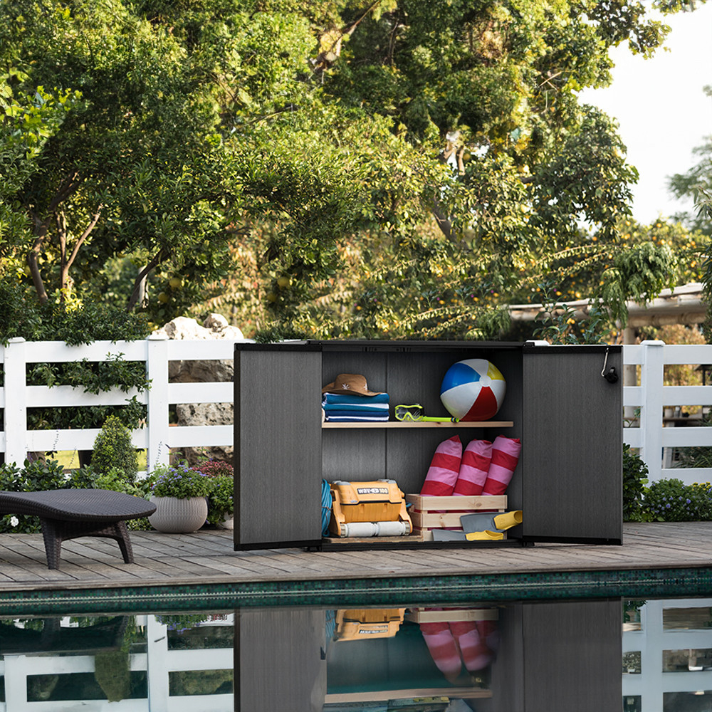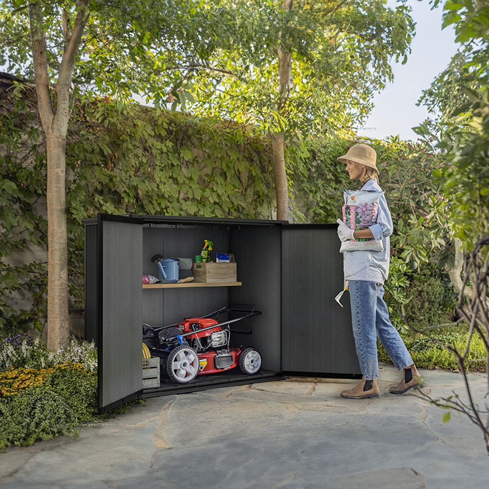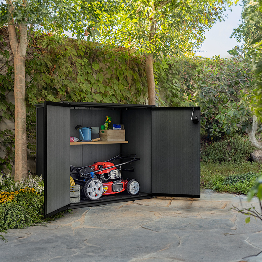 Lada de grădină din plastic Cortina Bella este ideală pentru depozitarea uneltelor , echipamentelor de grădină , accesoriilor și articolelor de uz casnic . Cortina, construită solid, este alegerea perfectă dacă aveți nevoie de un compartiment de depozitare universal și de mare capacitate .
