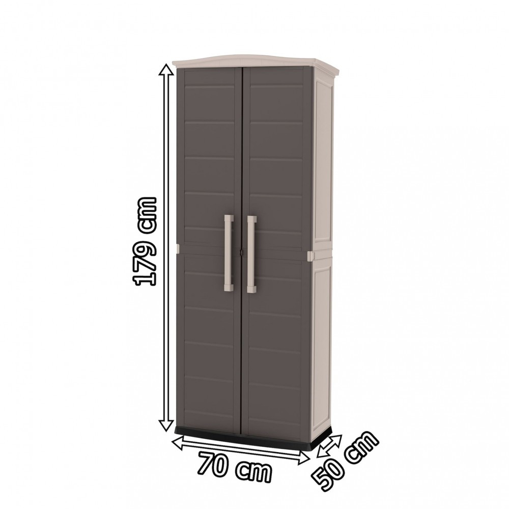 Podeaua dulapului înalt de grădină Boston protejează obiectele și echipamentele depozitate în interior de noroi, apă și rozătoare. Interiorul este bine protejat împotriva apei, etanș, dar bine ventilat, deci nu există riscul de umezeală sau de dezvoltare a ciupercilor sau mucegaiului. Dulapul de grădină este conceput pentru a fi asamblat singur. Datorită instrucțiunilor incluse în pachet, întregul proces de asamblare este rapid și ușor.