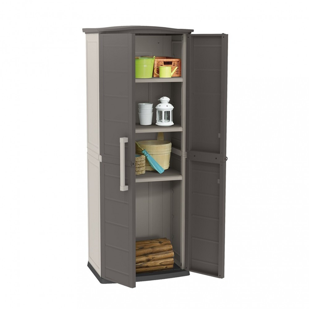 Șopronul înalt Boston are trei rafturi cu mult spațiu între ele, astfel încât chiar și obiecte mai mari pot încăpea cu ușurință înăuntru. În plus, dulapul poate fi încuiat cu un lacăt (lacătul nu este inclus).