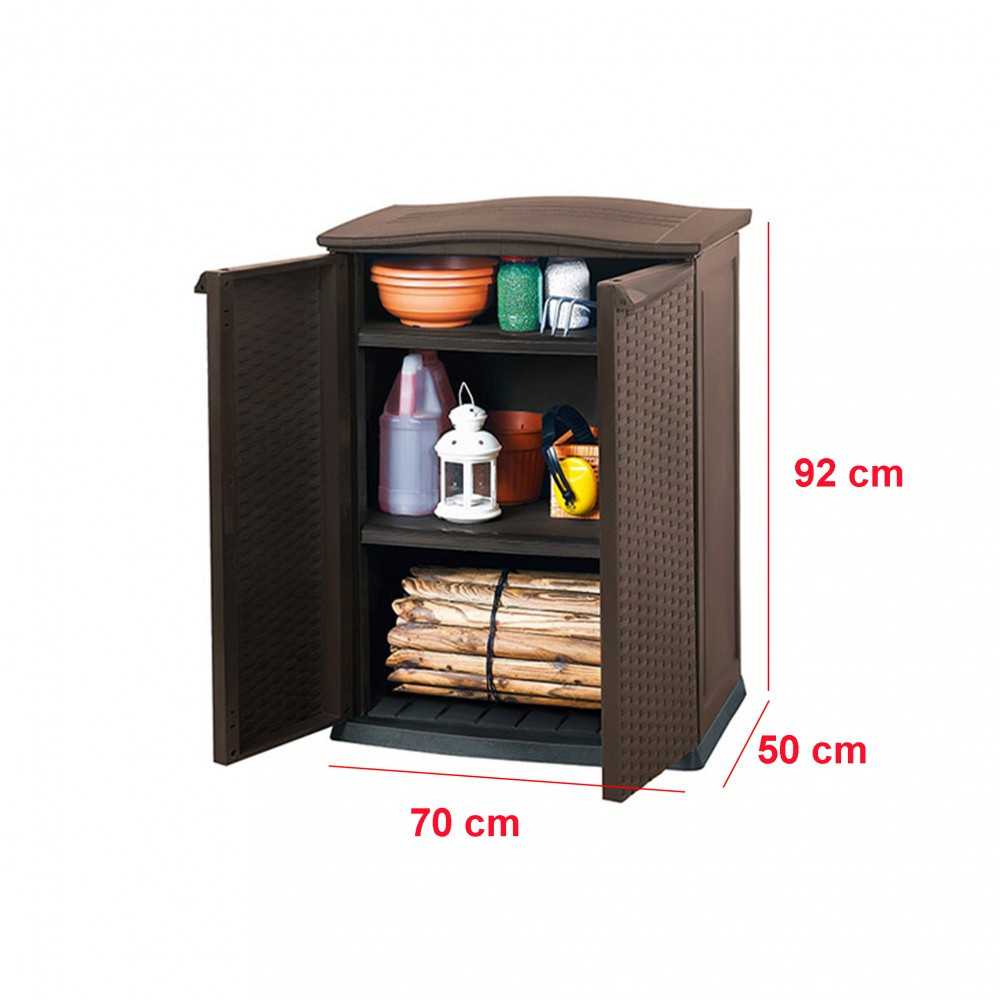Dulapul RATTAN STYLE - BASE SHED este caracterizat de un model simplu și elegant și culori universale. Dulapul este perfect pentru orice loc unde trebuie să păstrați accesoriile de grădină și articolele de uz casnic organizate. Construcție atentă, cu garnitură de cauciuc care protejează interiorul dulapului de pătrunderea apei și a umezelii.