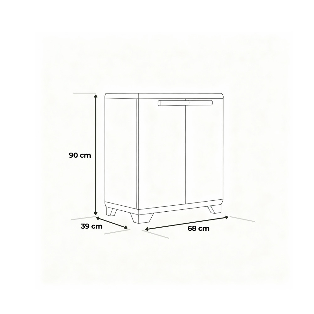 Materialele rezistente la intemperii, durabile și care nu se decolorează asigură o viață lungăîn orice grădină sau terasă. Picioarele reglabile asigură că dulapul rămâne stabil chiar și pe teren accidentat.
