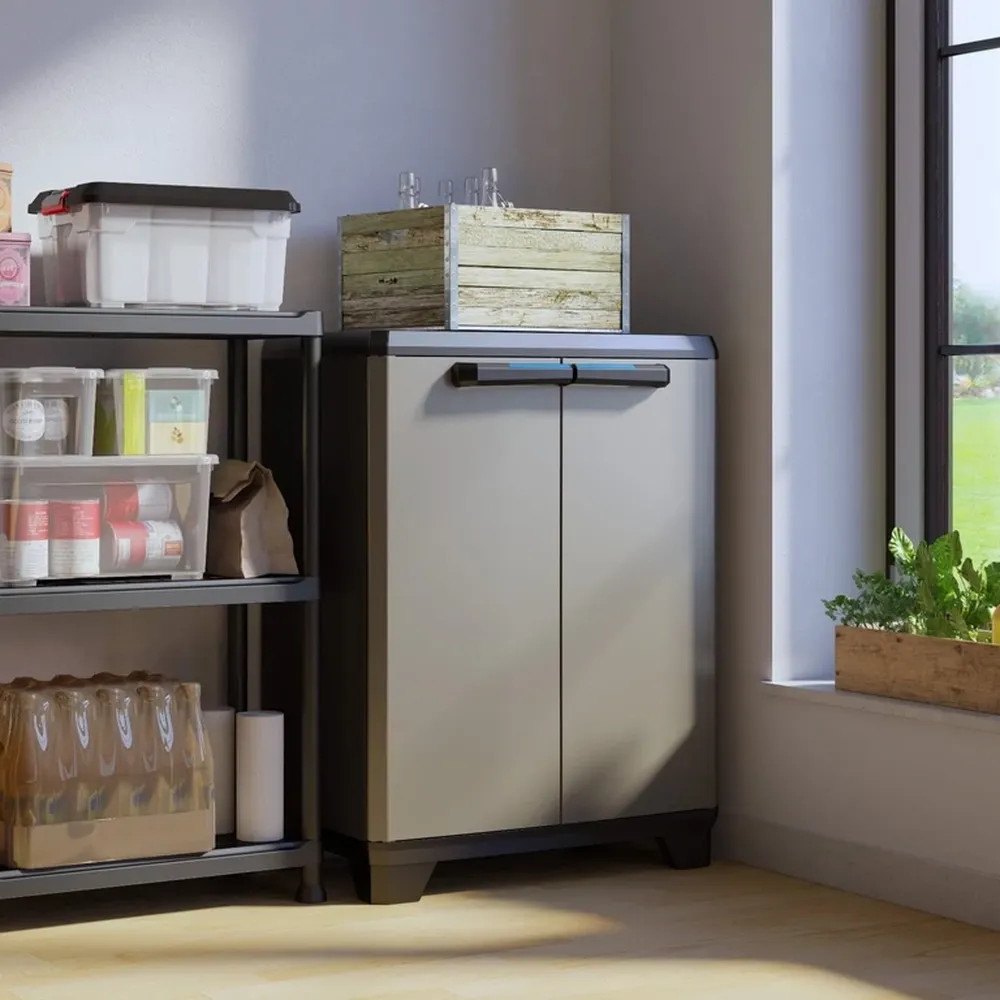 Combinația de culori negru și gri a dulapului din plastic Keter Linear Base este modernă și curată, ceea ce îl face o alegere excelentă pentru garaj, subsol, spălătorie, birou sau chiar terasă acoperită. Suprafețele netede sunt ușor de curățat, iar întreținerea este minimă. Designul cu profil redus este deosebit de practic dacă spațiul de depozitare este limitat sau dacă trebuie să vă potriviți sub o suprafață existentă.