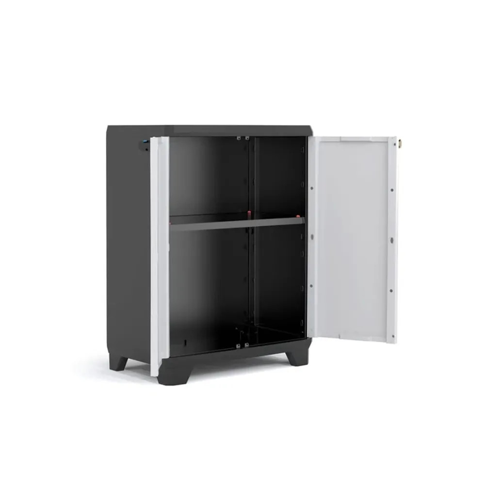 Dulapul din plastic cu bază liniară Keter în negru și gri este o soluție de depozitare compactă, dar fiabilă, care va ajuta la menținerea ordinii în orice spațiu pe termen lung.