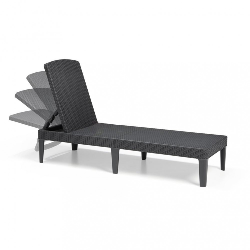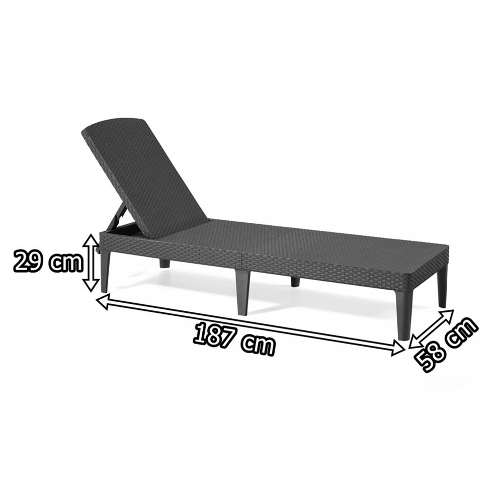 Șezlongul are un aspect elegant care amintește de technorattan, diferența este vizibilă doar de aproape. Șezlongul pliabil Jaipur are un spătar reglabil în patru trepte, care poate fi reglat după cum doriți.