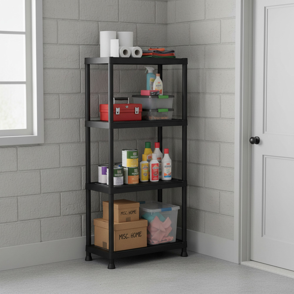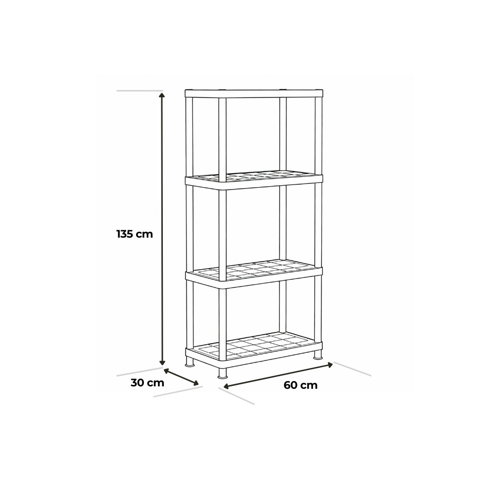 Raftul de depozitare cu 4 niveluri din plastic Keter Plus 60/4 este special conceput pentru a oferi o organizare eficientă în garaje, subsoluri, camere de utilitate sau chiar ateliere. Designul său îngust, dar înalt, permite utilizarea optimă a spațiului, chiar și acolo unde suprafața podelei este limitată.