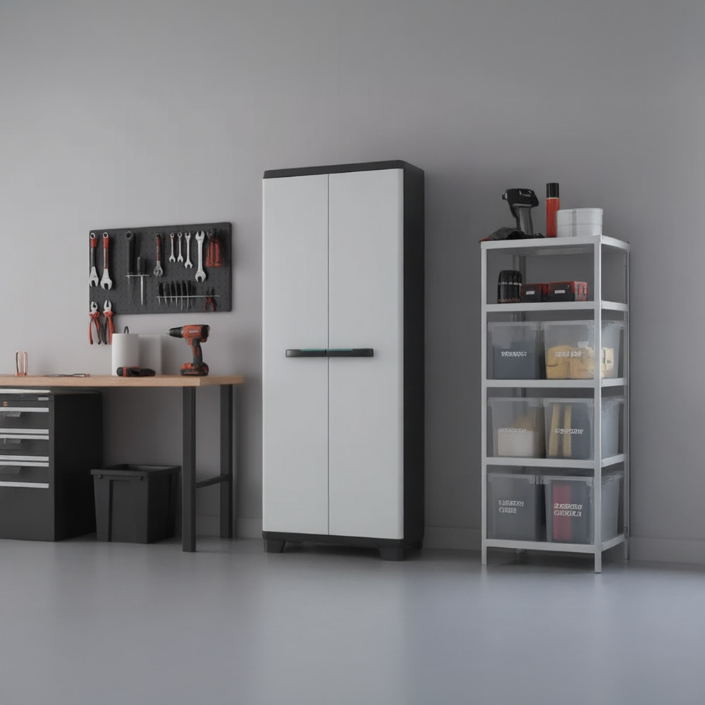 Combinația de culori negru și gri a dulapului înalt din plastic Keter Linear este modernă și curată, ceea ce îl face o alegere excelentă pentru garaj, subsol, spălătorie, birou sau chiar terasă acoperită. Suprafețele netede sunt ușor de curățat, iar întreținerea este minimă.