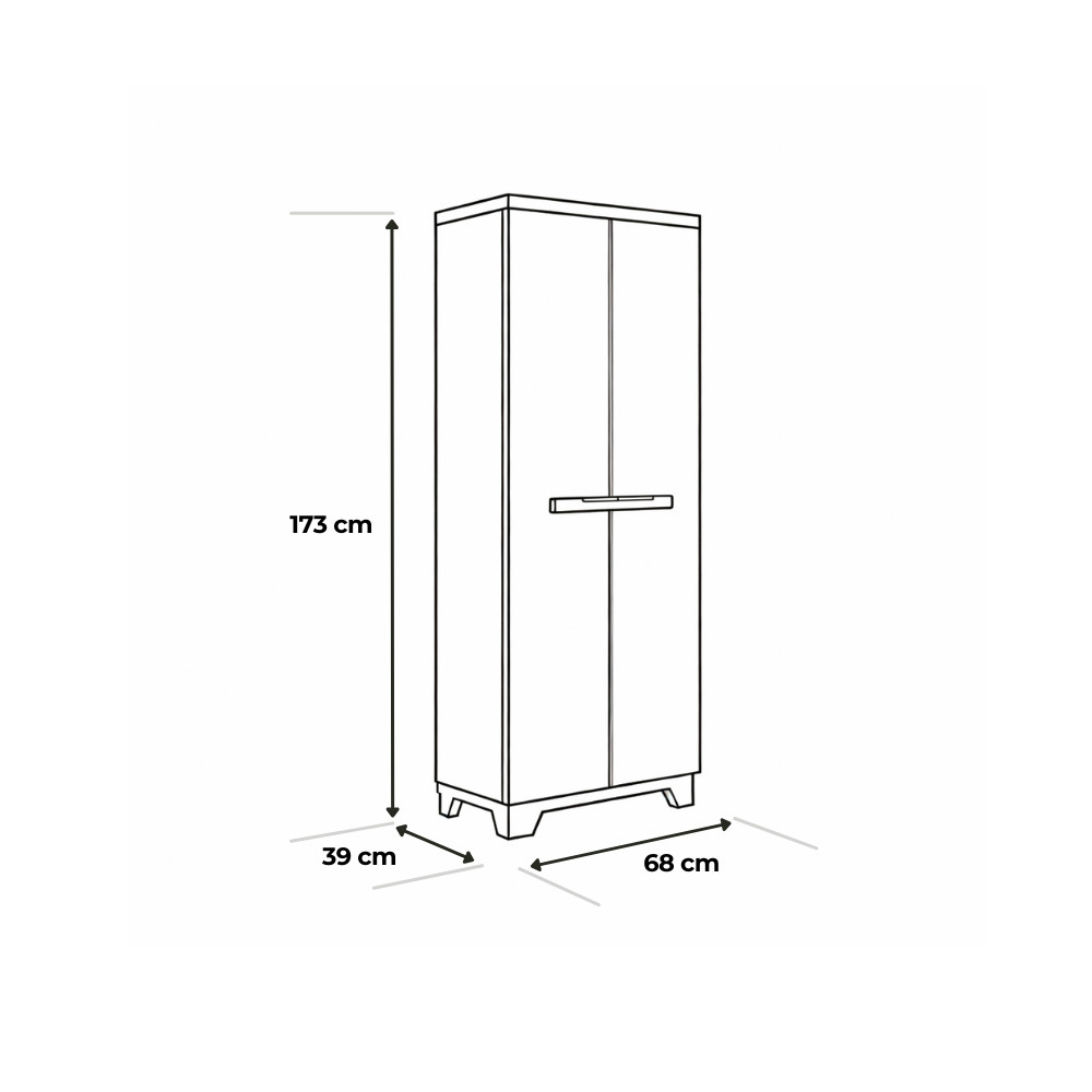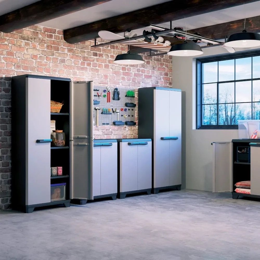 Materialele rezistente la intemperii, durabile și care nu se decolorează asigură o viață lungăîn orice grădină sau terasă. Picioarele reglabile asigură că dulapul rămâne stabil chiar și pe teren accidentat.