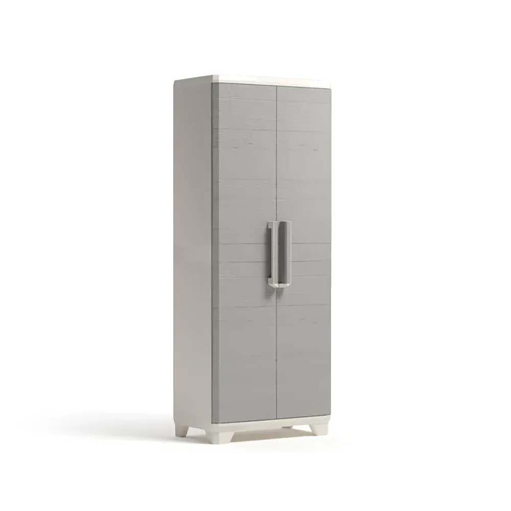 Materialele rezistente la intemperii, durabile și care nu se decolorează asigură o viață lungăîn orice grădină sau terasă. Picioarele reglabile asigură că dulapul rămâne stabil chiar și pe teren accidentat.