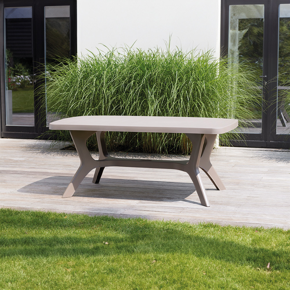 Masa de grădină Baltimore atrage atenția prin forma sa simplă, curată și modernă. Culoarea sa neutră Datorită acestui fapt, arată bine în orice mediu și poate fi ușor combinat cu alte stiluri de mobilier și accesorii. Designul modern și simplu este combinat cu ușurința în utilizare. Este nevoie doar de câțiva pași simpli pentru asamblare. Se poate curăța eficient cu un burete înmuiat în apă cu detergent.