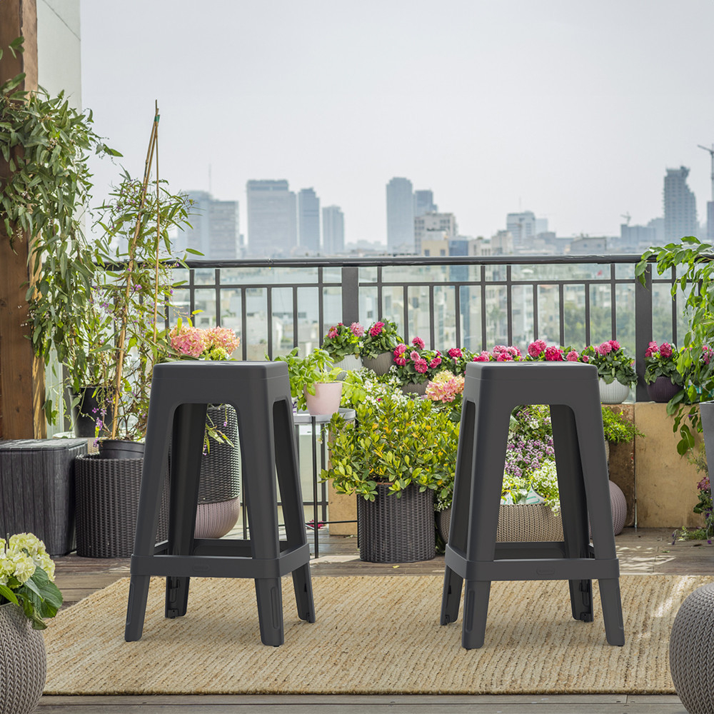 Scaunul de bar Misha este alegerea perfectă dacă îți dorești o piesă de mobilier modernă, dar în același timp retro. Scaunul de bar din rășină, de culoarea grafitului, nu este doar ușor, ci și ușor de stivuit, ceea ce face ca depozitarea să economisească extrem de mult spațiu.
