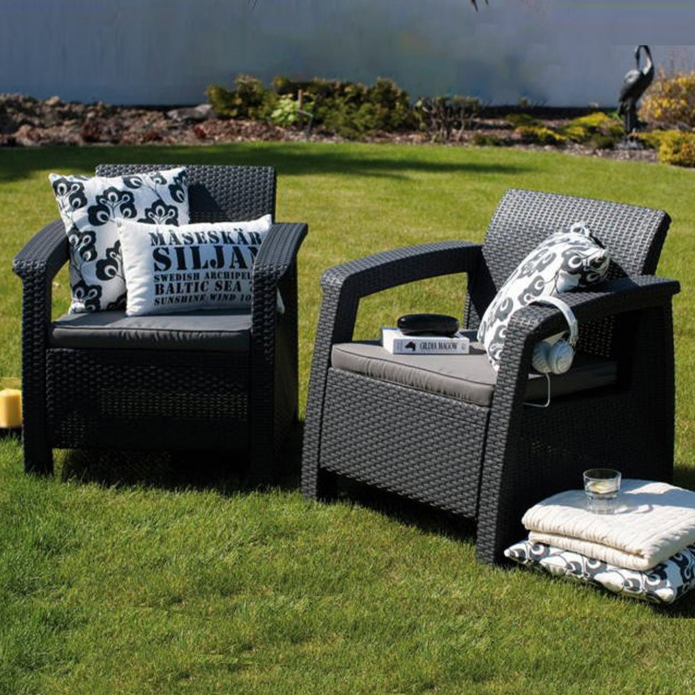 La prima vedere, poate părea că mobila este fabricată din ratan, dar de fapt este fabricată dintr-un plastic de extremă calitate, rezistent la intemperii. Pernele plate, cotierele late și spătarele conturate asigură confortul la utilizarea scaunelor de grădină. Producătorul de mobilă este marca Curver, care produce mobilier de grădină de înaltă calitate din plastic turnat prin injecție. Acest grup include mărcile bine-cunoscute și populare Keter și Allibert din Polonia. Mobila din Corfu este fabricată în fabrica companiei din Ungaria. Culoarea și designul uniform din cadrul seriei Corfu permit utilizarea fotoliilor Corfu II ca o completare a altor seturi din serie.