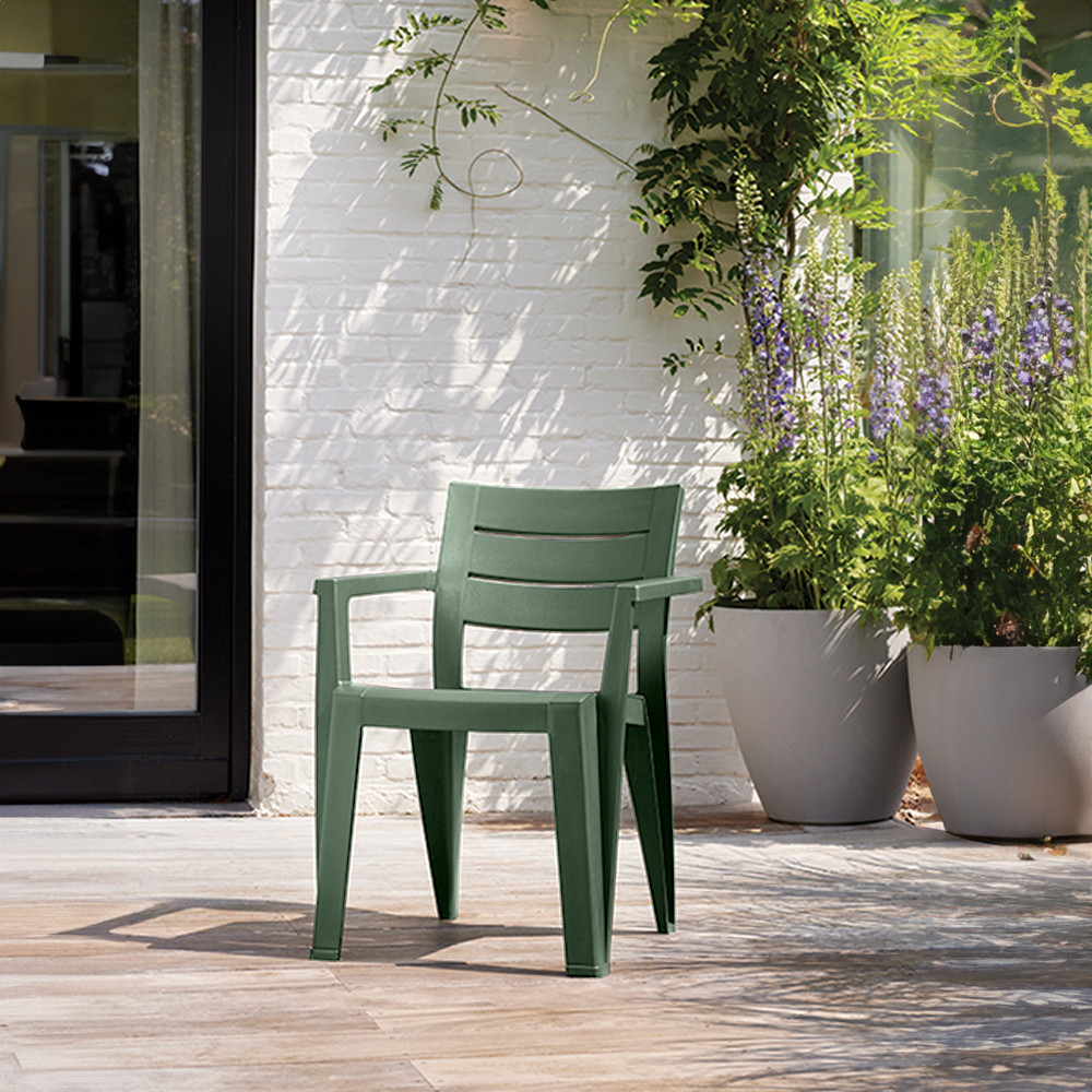 Scaun de grădină Julie din plastic cu cotiere, verde mediu