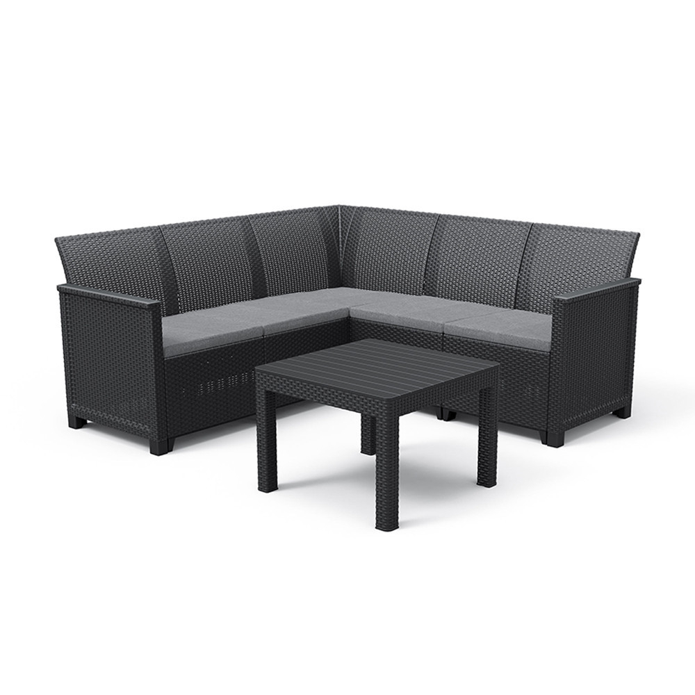 Set de colț de grădină Elodie cu 5 locuri și masă Chicago, grafit