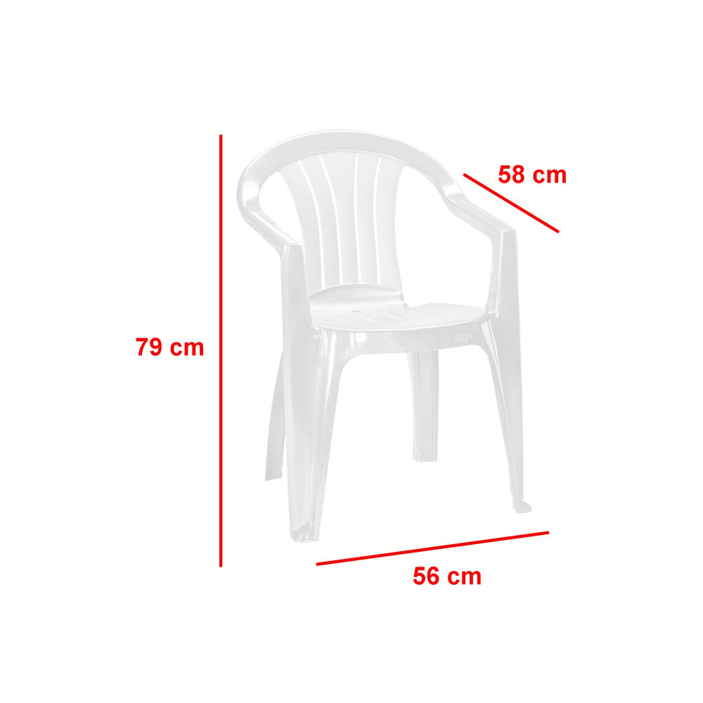 Un scaun universal care combină confortul cu un stil simplu și atemporal. Acest mobilier de grădină se caracterizează printr-o structură ușoară, dar stabilă. Scaunele sunt stivuibile, ceea ce ajută la economisirea spațiului și facilitează depozitarea. Este rezistent la condițiile meteorologice și la radiațiile UV. Ușor de curățat.