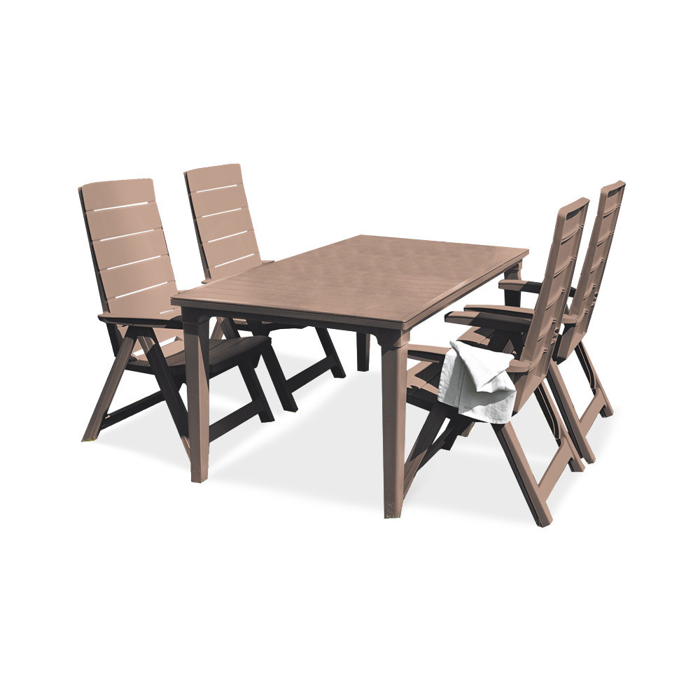 Masa cu formă îngustă va atrage pe oricine apreciază stilul și eleganța. Produsul combină aspectul unei mese din lemn cu beneficiile practice ale utilizării elementelor din plastic. Produsul este ușor de asamblat și ușor de curățat. Masa este rezistentă la deteriorări și la condițiile meteorologice pe termen lung.