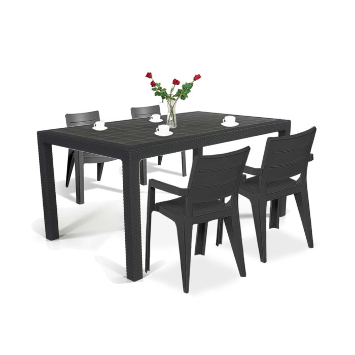 Setul de mobilier de grădinăMebiza 4+1 este alegerea perfectă pentru balconul, grădina sau chiar terasa restaurantului dumneavoastră. Acest set garantează confortul. Aspectul său discret, dar modern, va adăuga instantaneu culoare grădinii dvs. Datorită formei scaunului, acesta garantează o relaxare confortabilă.Setul este extrem de durabil, rezistent la condiții meteorologice extreme, datorită cărora își va păstra culoarea originală timp de ani de zile.