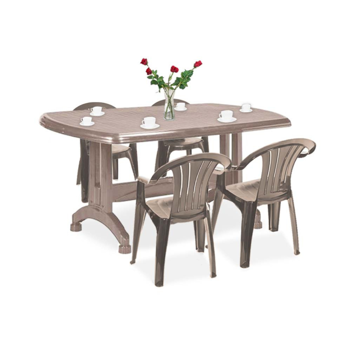 Masa de grădină din plastic este o masă de sufragerie cu 6 locuri, rezistentă la intemperii. Rezistent la radiații UV, zăpadă etc. Datorită picioarelor pliabile, poate fi depozitat cu ușurință atunci când nu este necesar. Întreținerea sa nu necesită mult timp; Tot ce ai nevoie este o cârpă umedă și puțin agent de curățare pentru ca masa ta să arate din nou strălucitoare.
