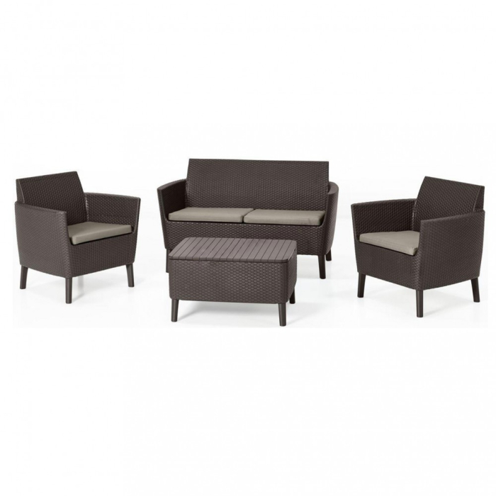 Mobilierul de grădină Curver Salemo maro este ideal pentru orice grădină, terasă sau balcon. Setul de mobilier Salemo maro este format dintr-o canapea dublă confortabilă, două fotolii și o măsuță de cafea. Setul Keter Selemo a fost creat pe baza unui proiect care face referire la tendințele globale în amenajarea și decorarea spațiului.
