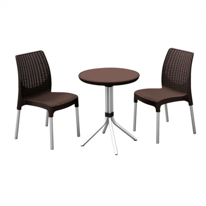 Setul de terasă Chelsea Set Keter este soluția perfectă pentru cei care caută mobilier pentru terasa, balconul sau veranda lor. Mobila arată ca și cum ar fi făcută din ratan. Setul de mobilier de terasă este fabricat din plastic de înaltă calitate - polipropilenă, care are proprietăți precum rezistență, rezistență la apă și rezistență la razele UV. Datorită acestui fapt, mobila este și mai rezistentă, nu își pierde culoarea și garantează mulți ani de utilizare. Mobila nu necesită nicio întreținere specială. Apa este suficientă pentru a le curăța. Utilizarea detergenților blânzi este permisă. Un alt avantaj al materialelor folosite este faptul că sunt prietenoase cu mediul. Setul de mobilier de terasă Chelsea Set Keter oferă locuri pentru două scaune și o măsuță de cafea rotundă cu un diametru de 60 de centimetri.