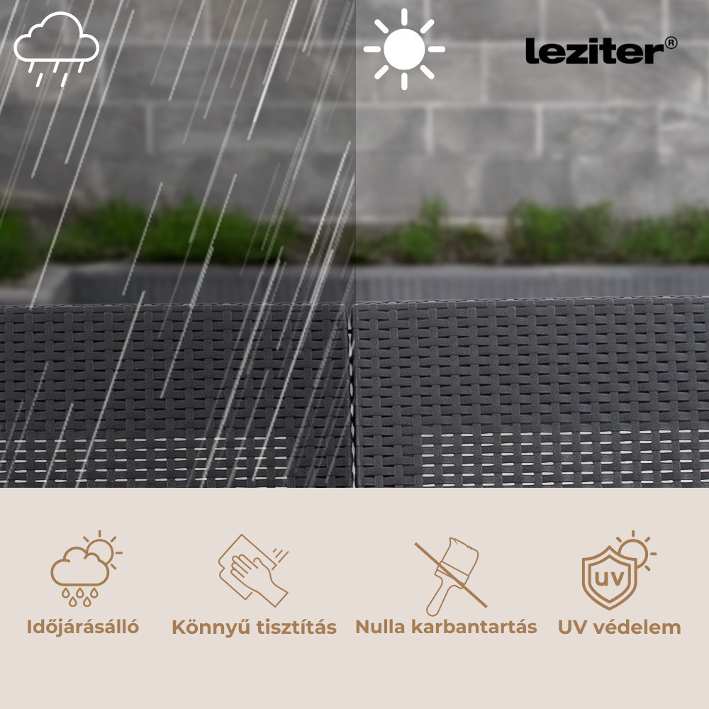 Setul de mobilier de grădină, disponibil în culoarea grafit, se mândrește cu o structură ușoară, dar durabilă. Pe lângă toate acestea, fiecare element este extrem de ușor de curățat, astfel încât aspectul general poate fi impecabil în cel mai scurt timp. Mobila este fabricată din plastic rezistent și durabil. Designul puternic și durabil înseamnă un grad ridicat de fiabilitate în practică și faptul că piesele de mobilier, fără excepție, asigură o durată lungă de viață, pe lângă utilizarea veselă care condimentează zilele de vară, lucru care se datorează aspectelor pozitive menționate mai sus.