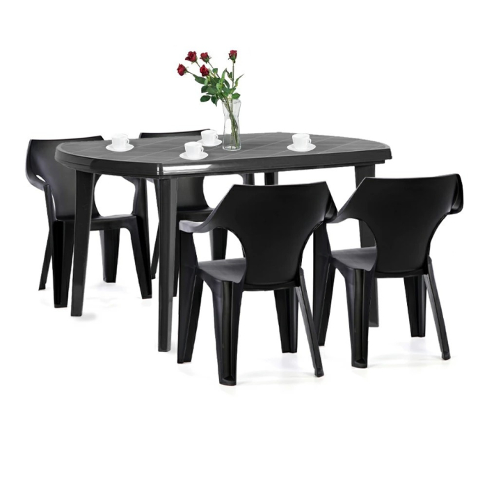 Setul de mobilier de grădină Elte 4 în 1 este o alegere perfectă pentru orice grădină sau terasă. Simplu, dar modern, ceea ce face setul și mai special. Este rezistent la condiții meteorologice extreme și, prin urmare, își păstrează forma originală ani de zile. Setul nu necesită întreținere sau curățare specială. Se recomandă ștergerea cu o cârpă moale îmbibată în detergent.