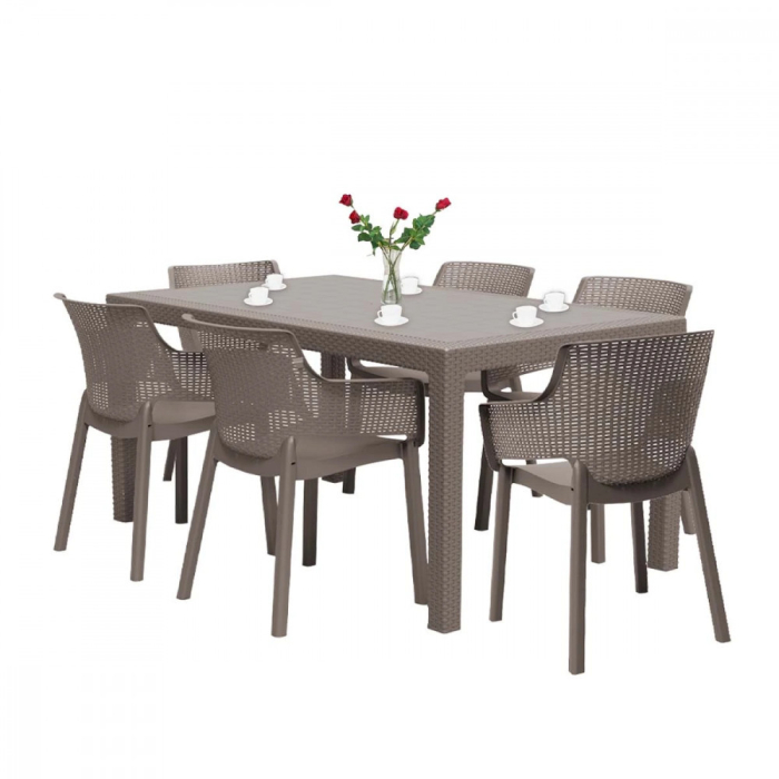 Set mobilier de grădină Evody 6 în 1, culoare cappuccino