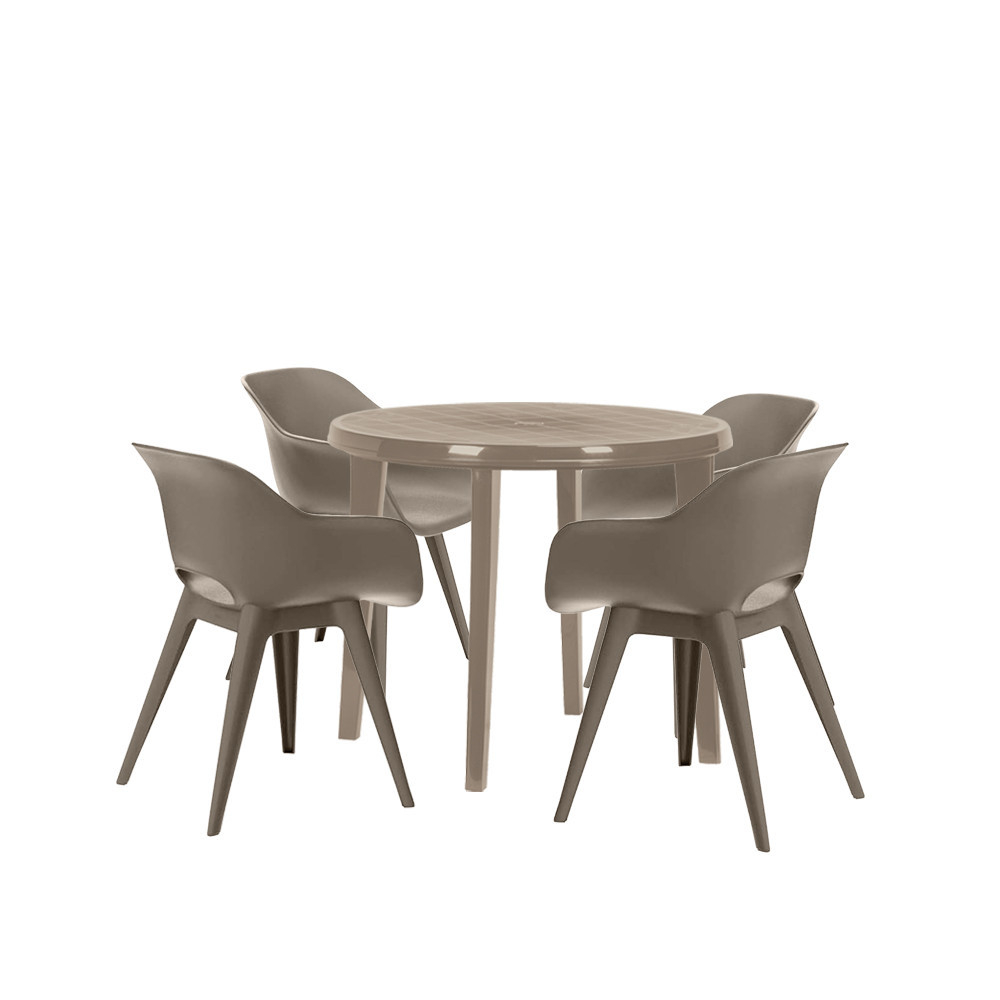 Datorită dimensiunilor setului, acesta poate fi amplasat în rame mai mari sau pe terase mai mici. Scaunul din plastic are o cotieră specială și unică, care combină o structură stabilă și un design elegant. Scaunul se potrivește perfect în grădini, terase, balcoane și în interior. Un produs solid, durabil, rezistent la intemperii și radiații UV. Masa rotundă va atrage pe toți cei care apreciază stilul clasic și simplitatea. Produsul este ușor de asamblat și ușor de curățat. Masa este rezistentă la deteriorări și la condițiile meteorologice pe termen lung.