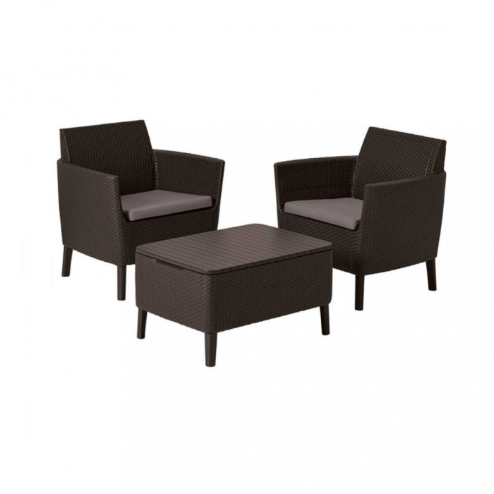 Setul de mobilier de grădină Curver Salemo este fabricat dintr-un material durabil și rezistent, care rezistă efectelor condițiilor meteorologice schimbătoare, radiațiilor UV și amplitudinilor de temperatură. Nu necesită întreținere sau utilizarea unor produse speciale de îngrijire, ceea ce economisește bani. Din punct de vedere vizual, mobila arată bine. Designul lor universal, inspirat de stilul scandinav, și culorile discrete de maro, le fac să se găsească în toate amenajările, atât tradiționale, cât și moderne. Blatul măsuței de cafea este durabil și rezistent la condițiile meteorologice schimbătoare, ceea ce îi conferă un aspect elegant. Textura sa este netedă. Rășina protejează produsul de efectele radiațiilor ultraviolete, ruginii sau putregaiului, astfel încât setul va servi mai multe sezoane fără a-și pierde aspectul original.