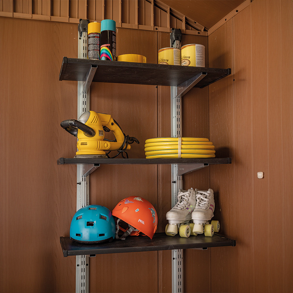 Setul de 70 de rafturi este compatibil cu toate șoproanele Keter, cu excepția gamei Factor. Înălțimea dintre rafturi este reglabilă, astfel încât puteți personaliza zonele de depozitare în funcție de nevoile dumneavoastră.