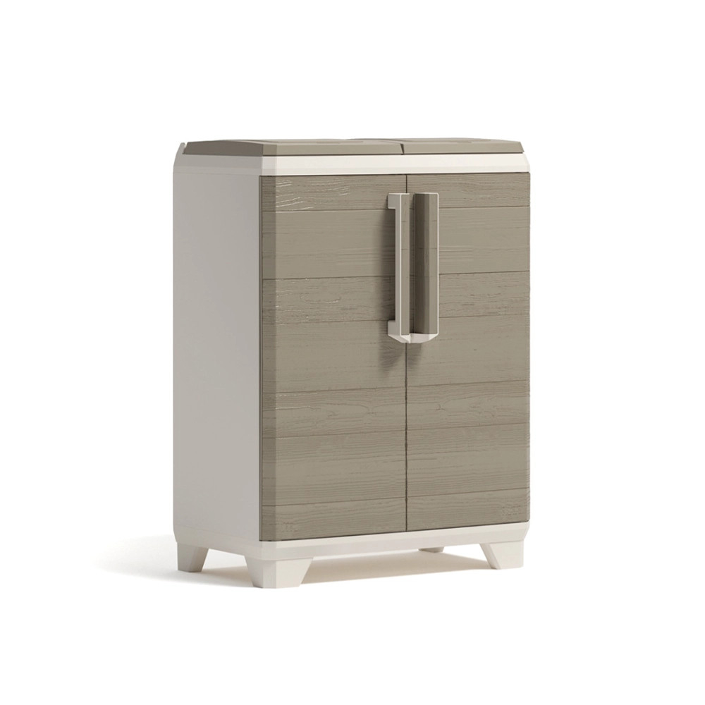 Materialele rezistente la intemperii, durabile și care nu se decolorează asigură o viață lungăîn orice grădină sau terasă. Ușorde curățat, ceea ce este deosebit de important pentru containerele de deșeuri. Picioarele reglabile asigură stabilitatea pubelei chiar și pe terenuri denivelate.