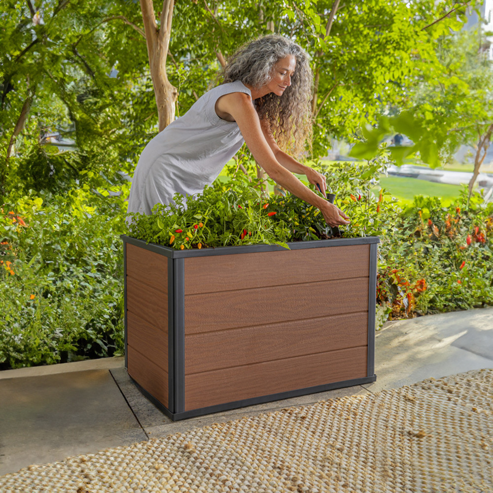 Transformă-ți casa într-o oază de verdeață cu stratul de flori Mobile Maple Urban. Este fabricat din materialul inovator Evotech™, ceea ce îl face să nu necesite întreținere. Este ușor de asamblat și de mutat ulterior datorită celor șase roți puternice. Sistemul inteligent de irigații asigură umiditatea optimă pentru plante. Plantele tale vor fi viguroase.