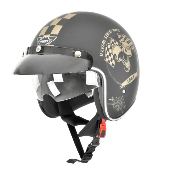 Cască potrivită pentru scutere și motociclete. Omologare europeană ER13*22R00*22RO5*10255*00. Material ABS. În interior există o inserție detașabilă/lavabilă și confortabilă cu curea de fixare cu eliberare rapidă. Casca are un finisaj de înaltă calitate și un scut reglabil.