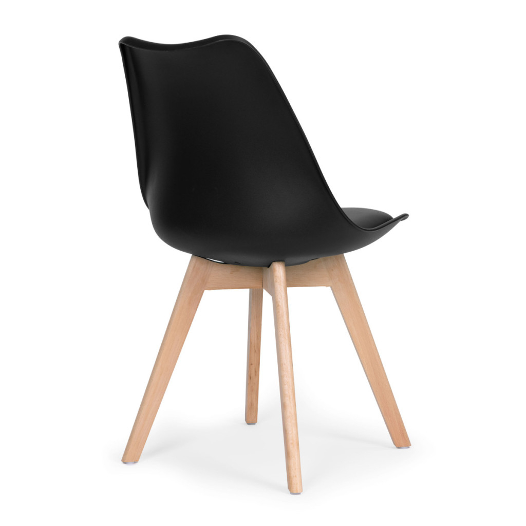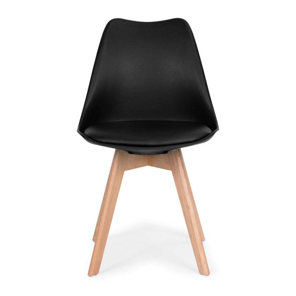 Combinația dintre picioarele din lemn de fag și perna elegantă din piele ecologică oferă scaunului un aspect modern, dar confortabil.