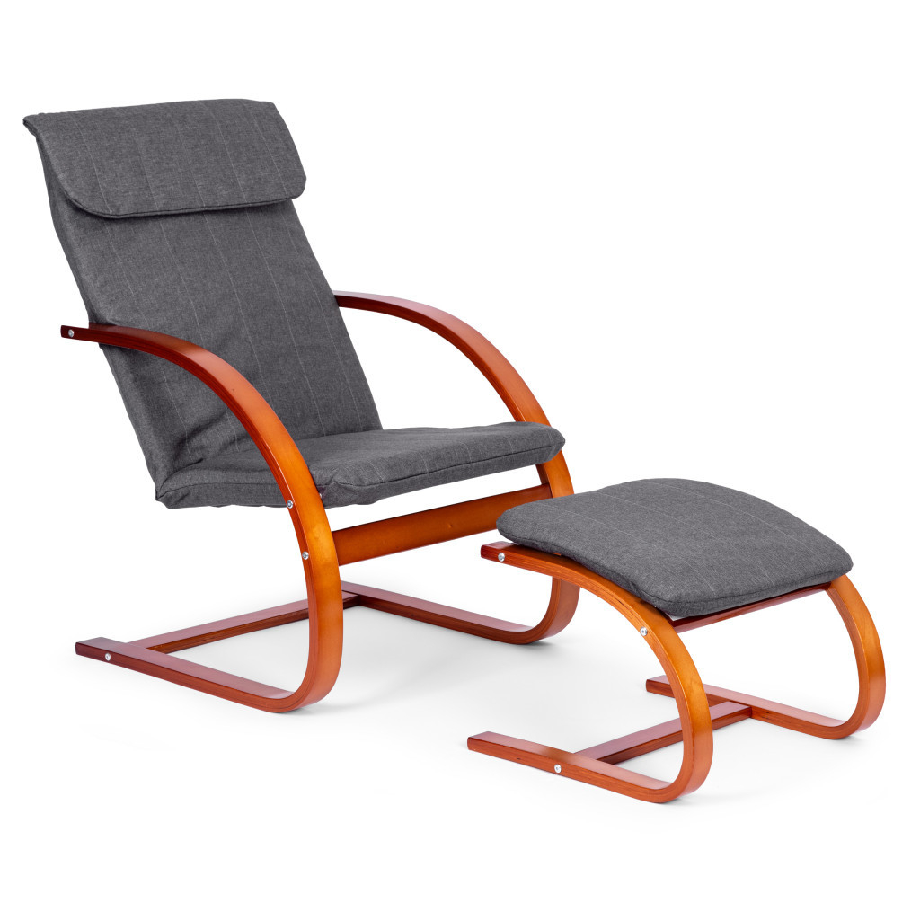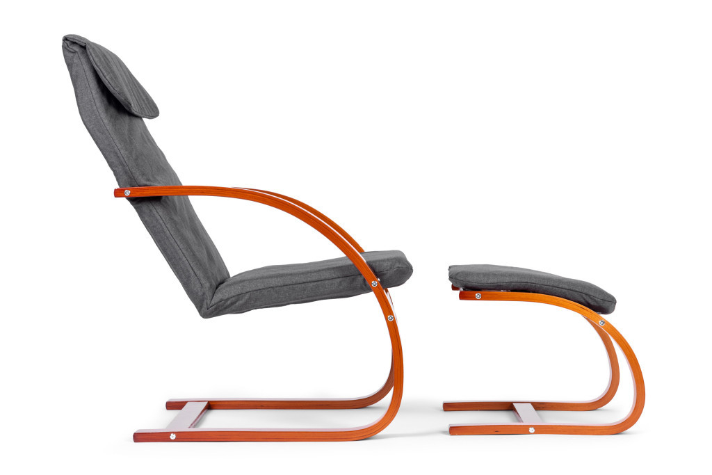 Fotoliul vine și cu un suport pentru picioare pe care vă puteți odihni picioarele confortabil, permițându-vă să vă relaxați complet. Întregul alcătuiește un set elegant care se va potrivi oricărui interior. Datorită suportului pentru picioare, vă puteți citi cartea preferată sau puteți răsfoi ziarul într-o poziție confortabilă, relaxantă.
