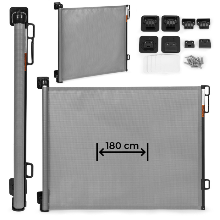 Pachetul include **șuruburi de expansiune** pentru fixare sigură și **benzi de lipici** pentru instalare fără găurire. Acest lucru face ca poarta să fie potrivită pentru o varietate de suprafețe, inclusiv sticlă, metal și lemn, oferind o soluție versatilă pentru orice casă.