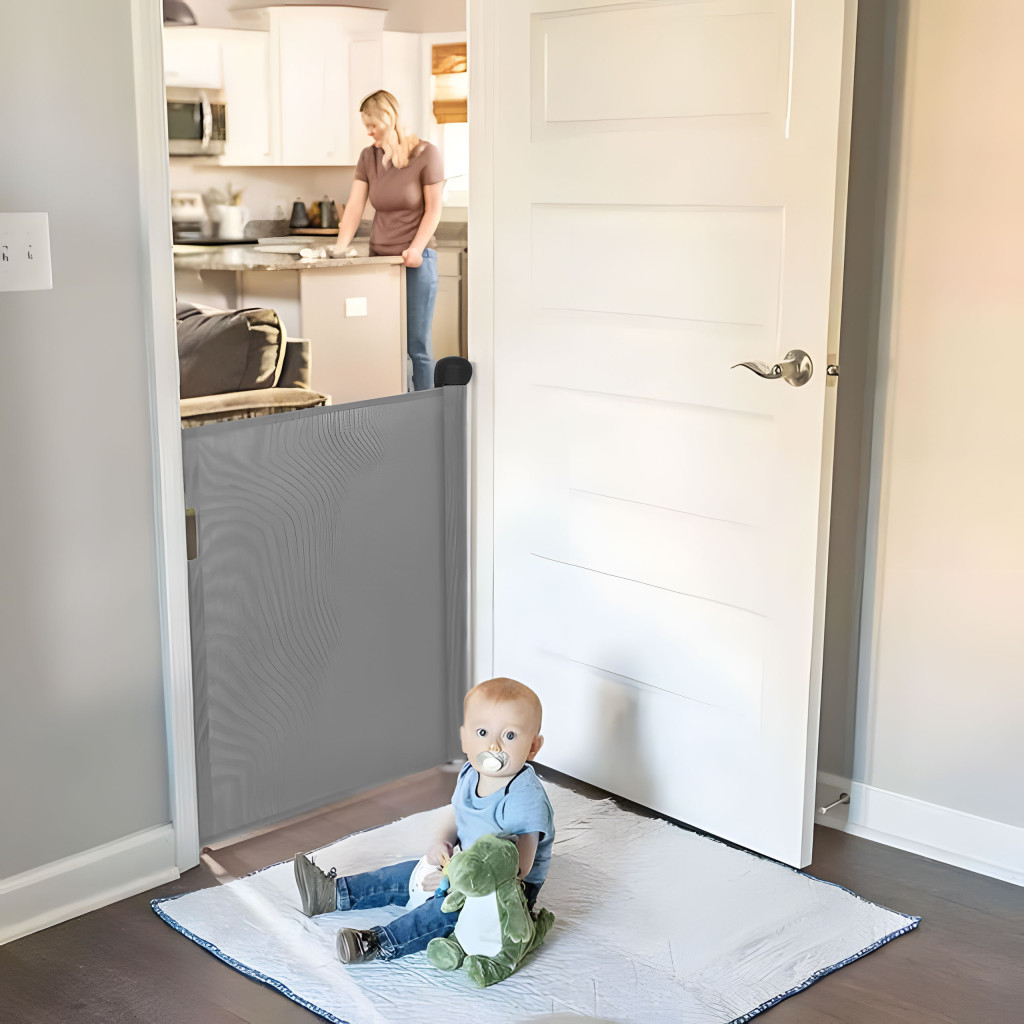 Poarta este echipată cu un buton de blocare pentru a controla mecanismul de rulare, asigurând o poziție sigură și stabilă. O simplă apăsare a unui buton **blochează sau **dezblochează** poarta, permițând utilizatorilor să ajusteze lungimea acesteia după cum este necesar. Această caracteristică oferă **conveniență și** siguranță suplimentară** în utilizarea de zi cu zi.**
