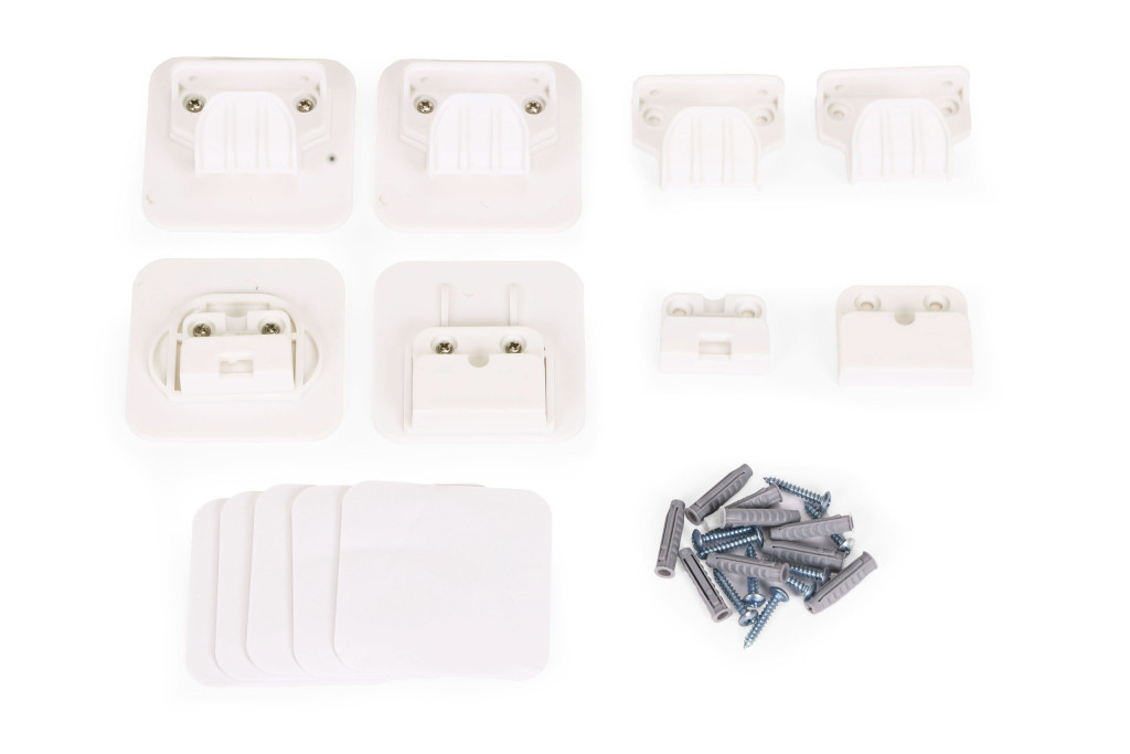 Poarta de securitate ECOTOYS vine cu un kit complet de instalare, permițând o instalare rapidă și fără probleme oriunde. Kitul include **suporturi de fixare, strunguri puternice și benzi de fixare autoadezive** pentru o fixare stabilă și durabilă.