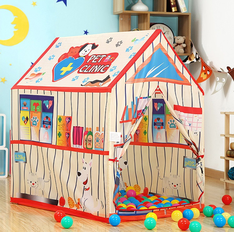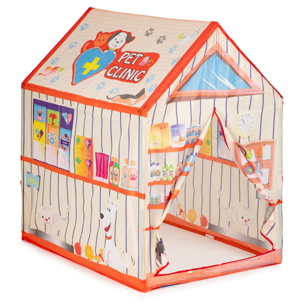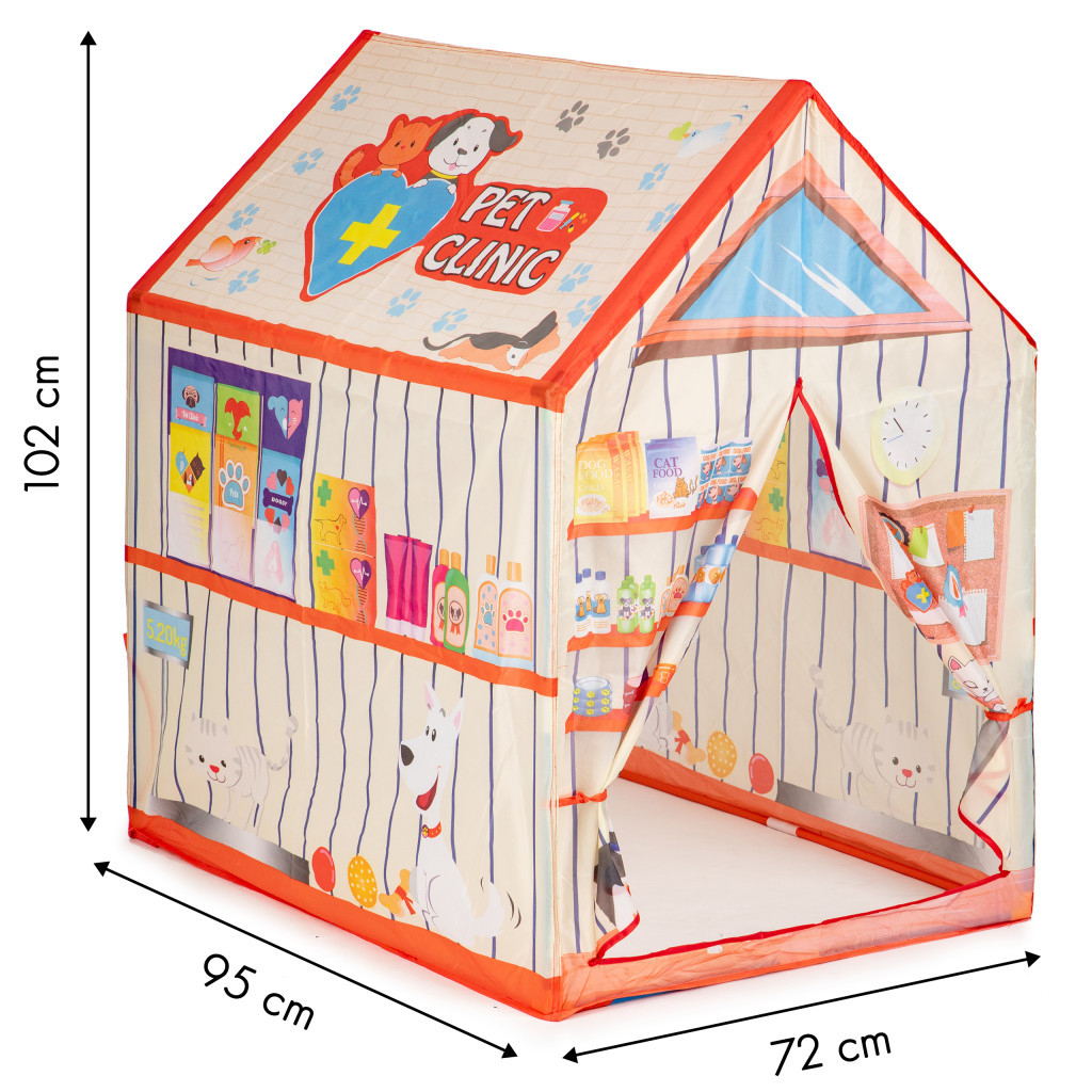 Casa este pentru toți iubitorii de animale, datorită cortului care seamănă cu un cabinet veterinar, copilul dvs. poate juca rolul unui cabinet veterinar. Cortul cu grafică colorată oferă distracție fără sfârșit.