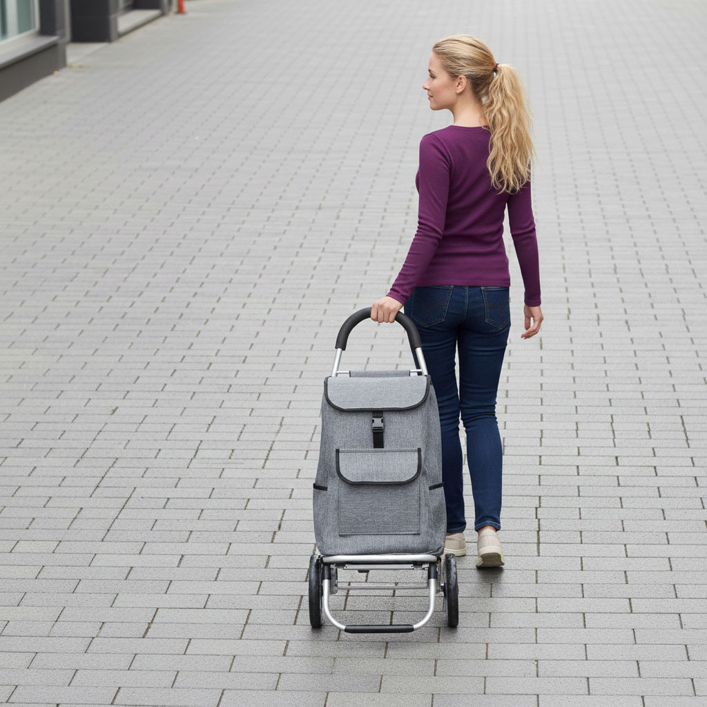 În viața de zi cu zi, contează ceea ce face lucrurile mai ușoare - și exact asta oferă căruciorul de cumpărături ModernHome. Acesta oferă confort, independență și un sentiment de siguranță, în specialpentru persoanele în vârstă care doresc să își gestioneze confortabil sarcinile zilnice fără a căra saci grei. Căruciorul se rostogolește ușor și uniform, iargeanta spațioasă cu fund întărit vă menține cumpărăturile în siguranță. Un ajutor practic pentru călătoriile la magazinul alimentar, la piață sau la oficiul poștal - o soluție care face sarcinile zilnice mai ușoare și mai puțin stresante.