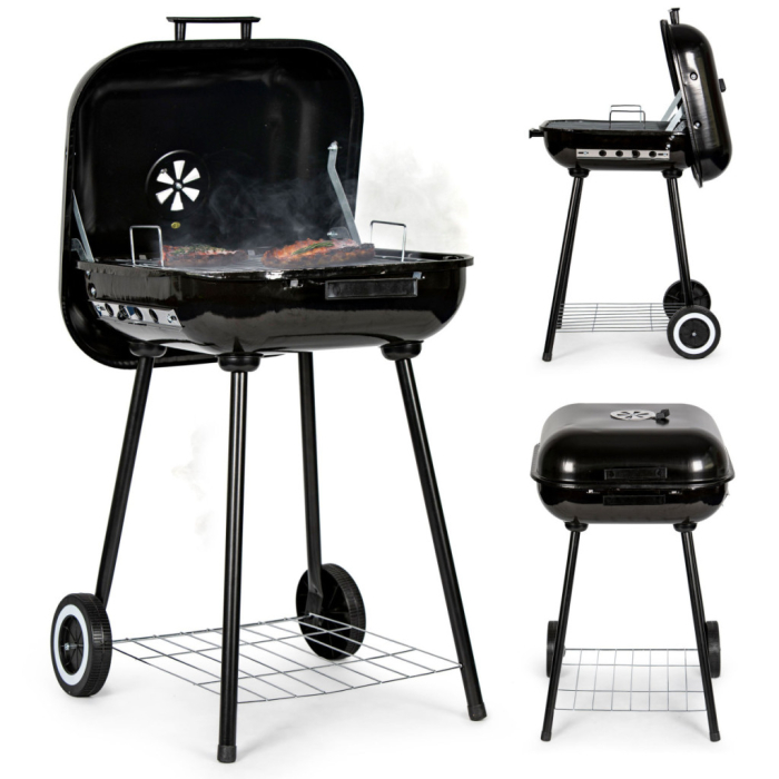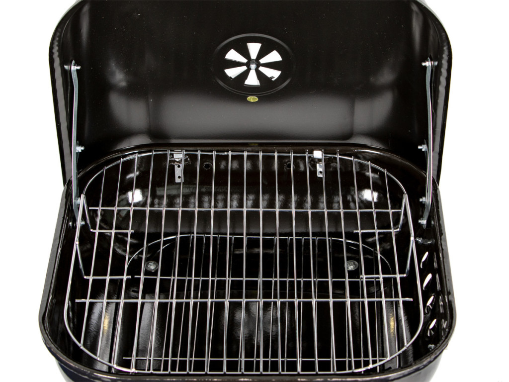 Grătarul este echipat cu deschideri suplimentare de ventilație pe părțile laterale ale focarului și pe capac. Acestea asigură controlul adecvat al temperaturii și circulația aerului.