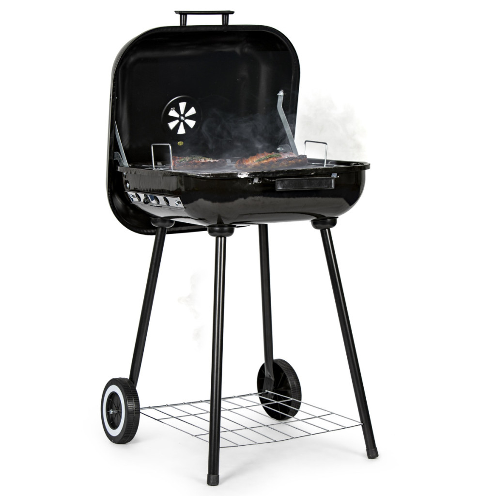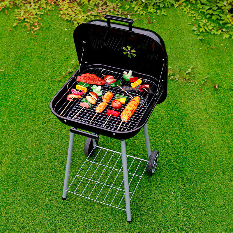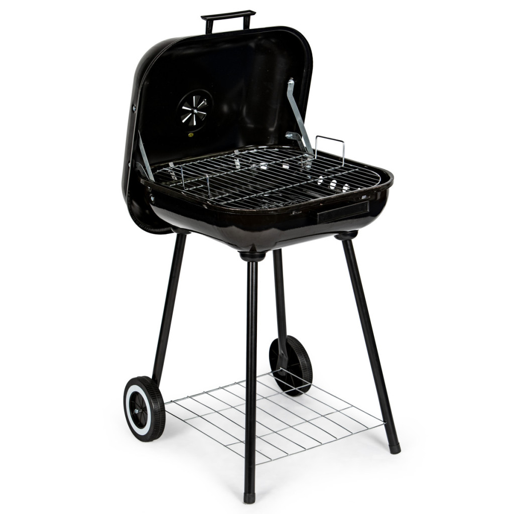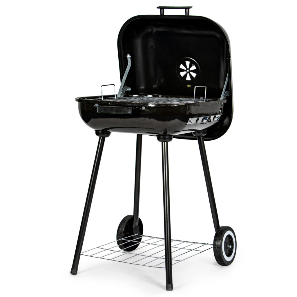 Sub focar se află un raft practic pentru depozitarea cărbunelui sau a altor accesorii pentru grătar.
